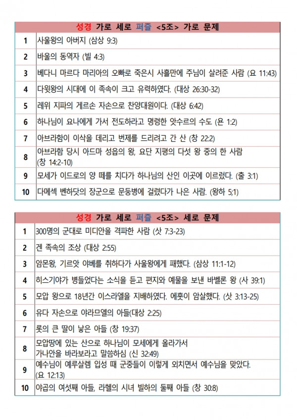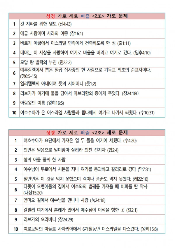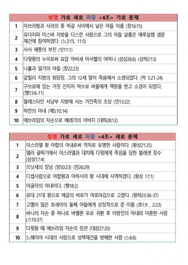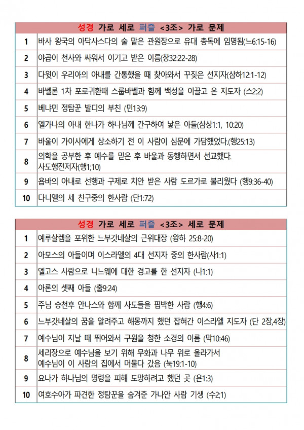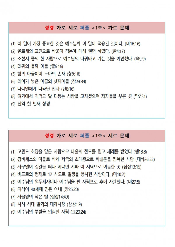 성경 가로 세로 퍼즐 문제 파일 다운